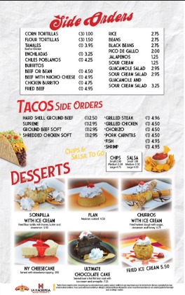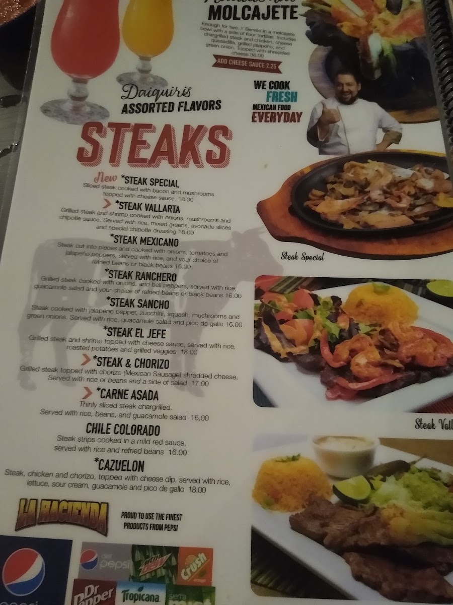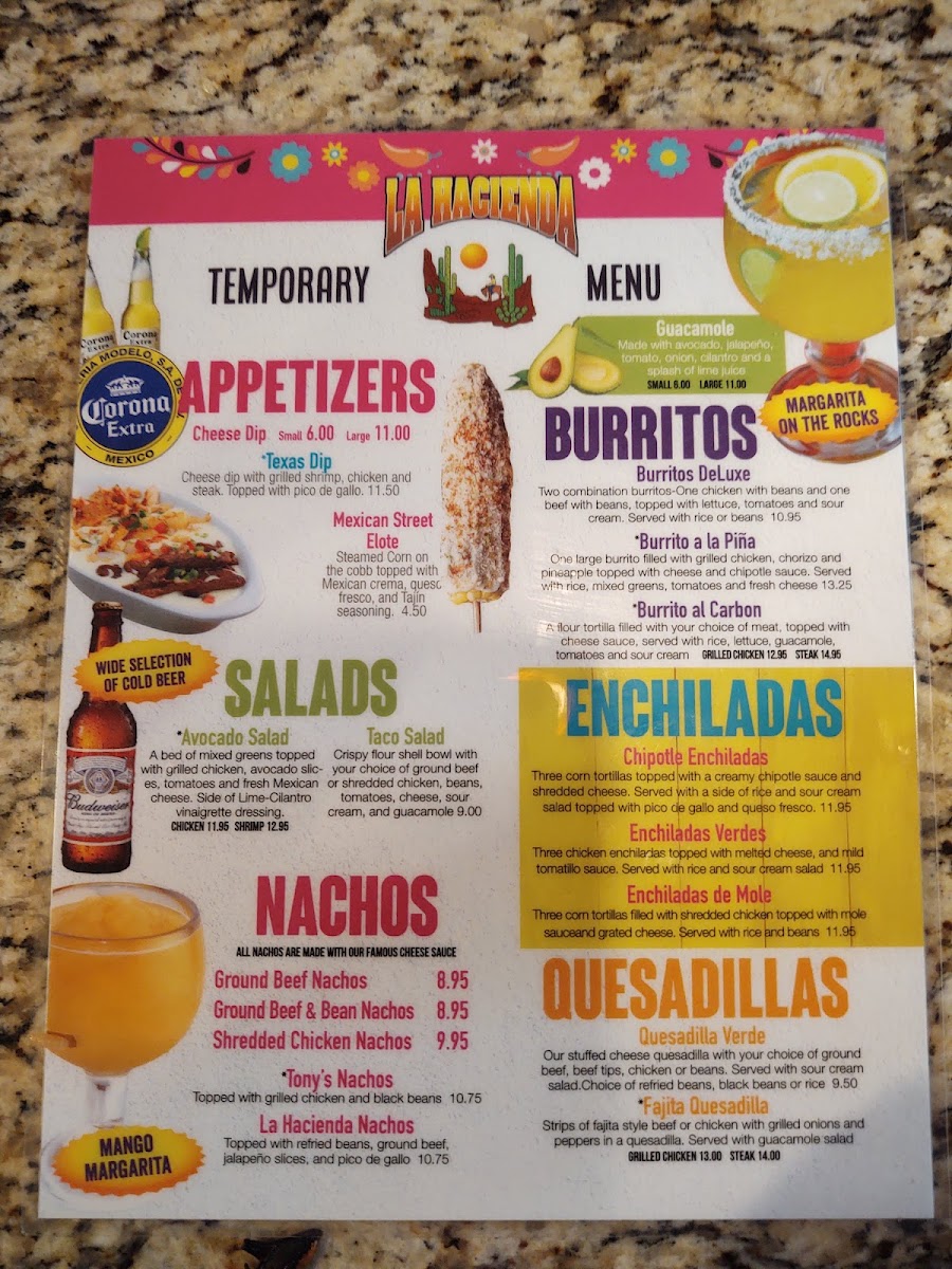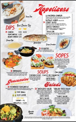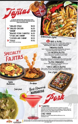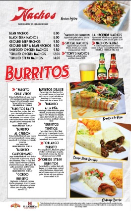 *Foods cooked to order, consuming raw or undercooked meats, poultry, seafood, shellfish or eggs may increase your risk for foodborne illnesses, especially if you have certain medical conditions. To our guests with food sensitivity or allergies: La Hacienda Mexican restaurants cannot ensure that menu items do not contain ingredients that might cause an allergic reaction.